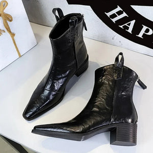 2024 Autumn/winter Women Boots Genuine Leather Western Boot Women Shoes Pointed Toe Chunky Heel Chelsea Boots Retro Ankle Boots