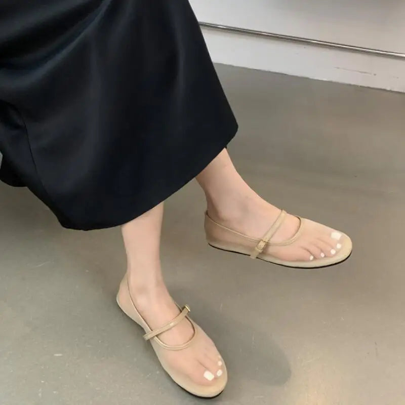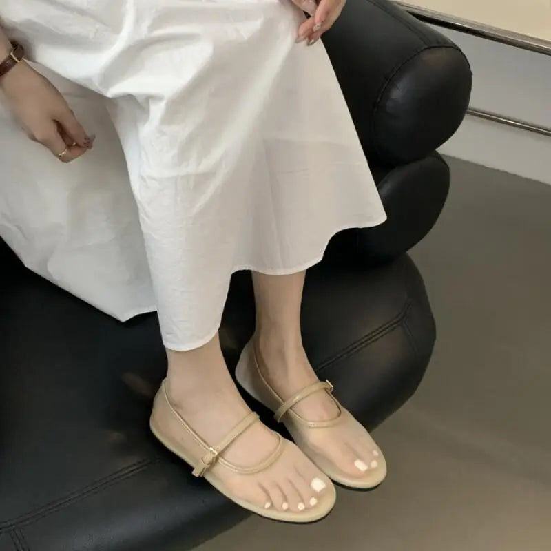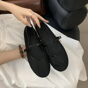 2024 Fashion Round Toe Mesh Mary Jane Flats Shoes Women Summer Shallow Shoes Buckle Ballet Footwear Ladies Moccasins Shoes