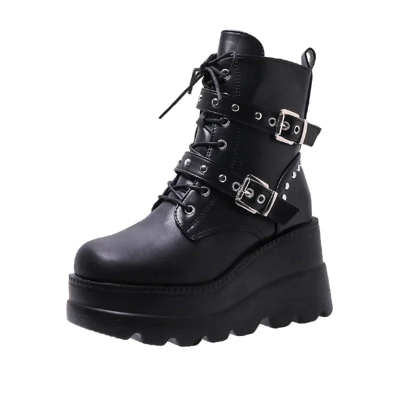 2024 Goth Platform Ankle Chelsea Boots Women New Rock Emo Chunky Grunge Wedges Motorcyccle Shoes Big Sizes 43 Booty Woman