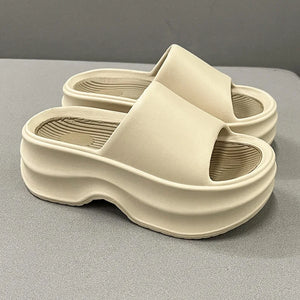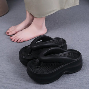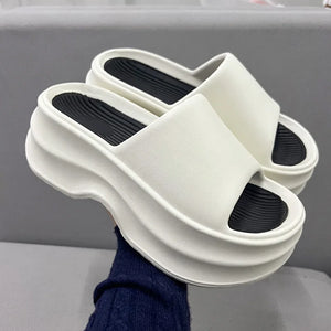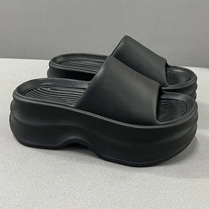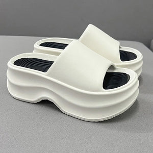 2024 New Elevated Soft Sole Anti Slip Women's Slippers Thick EVA Soft Sole Home Platform One Line Outwear Beach Summer Sandals
