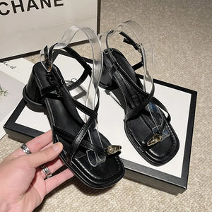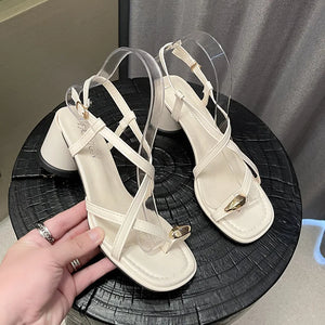 2024 New French Chunky Heel Set Toe Sandals, Niche Design High-grade Large-size Temperament Pinch Toe Casual Sandals