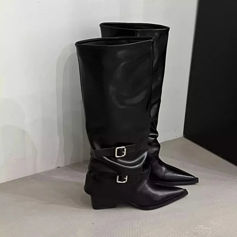 2024 New High-heeled Women Boots Pointed Toe Long Boots for Women Sexy Punk Gothic Boots Paris European and American Female