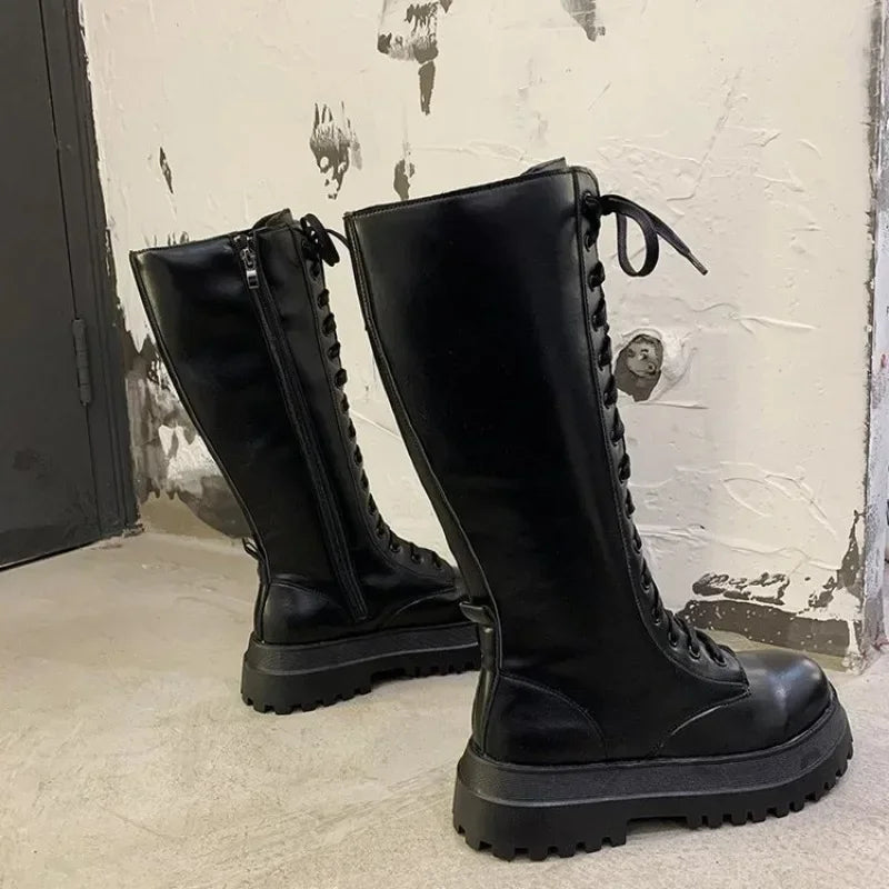 2024 New Maogu Tall Flat Knight Boots Women Strappy Side Zip Thick Bottom Round Toe Long Boot Women's Shoes Winter Fashion
