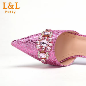 2024 Newest INS Pink Color Elegant High Heels Nigeria Popular Design African Ladies Shoes And Bag Set for Wedding Party