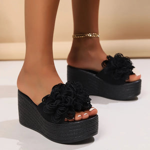 2024 Wedges Sandals Women Slippers Summer Beach Platform Shoes Flower Slippers Women High Heel Slippers Women