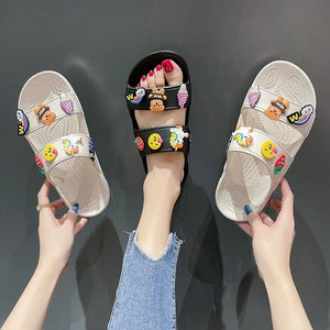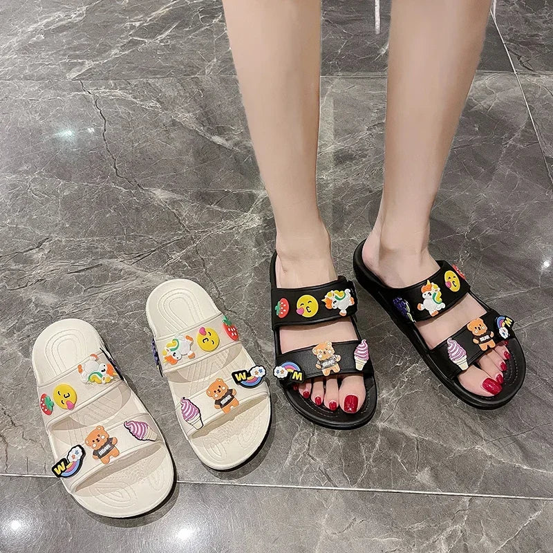 2024 Women Summer Casual Slides Comfortable Flax Slippers Striped Cartoon Flip Flops Platform Sandals Ladies Outdoor Shoes