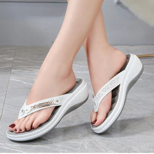 Women's Summer Wedge Metal Button Slippe: Wedge beach sandals women's outer thick sole slippers casual flip flop