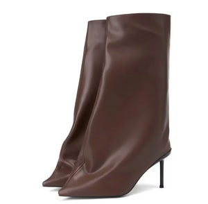 2024New Designer Slender High Heels Knee Length Women's Boots Fashion Walk Party Women's Large Mid Size Boots Autumn and Winter