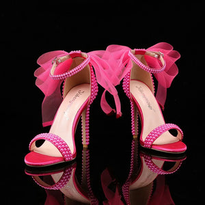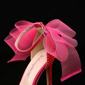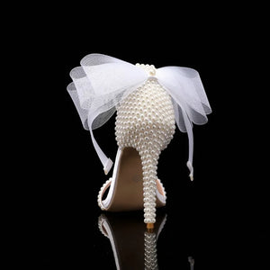 2025 New Fish Mouth High Heels Shallow Mouth Rhinestone Pearl Sandals Women's Wedding Bride Shoe