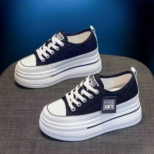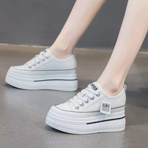 2025 New Woman Platform Sneakers Wedge Shoes Female 8cm Height Increasing Ladies Breathable Cloth Casual Shoes Canvas Shoes