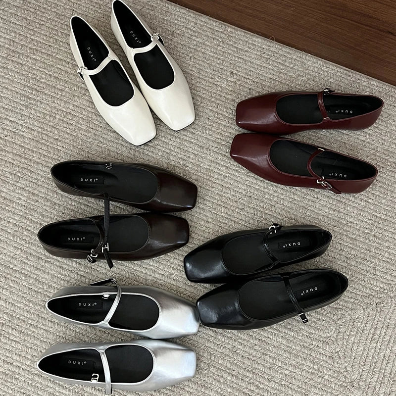 2025 Women Mary Jane Shoes Sandals Fashion Buckle Strap Female Footwear Slides Square Toe Soft Sole Ladies Lolita Shoes