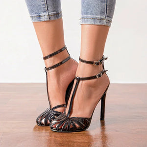 2025High Heel Women Sandals Summer Black Stilettos Ankle Buckle Strap Ladies Casual Pumps PU Sexy Sandalias Comodas De Mujer