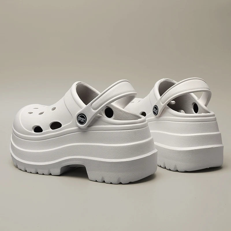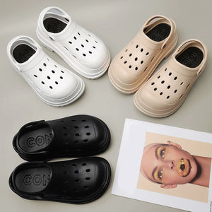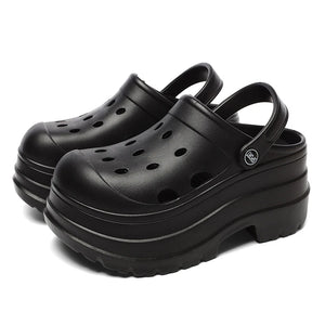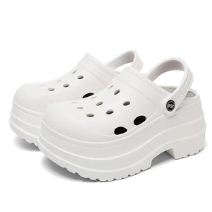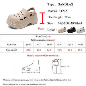 9cm Chunky Platform Clogs Sandals Women 2024 New Beach Hollow Out Sandals Shoes Woman Summer Closed Toe Wedge Heels Slippers