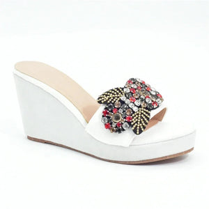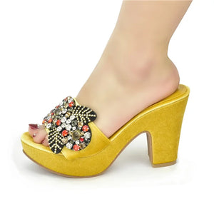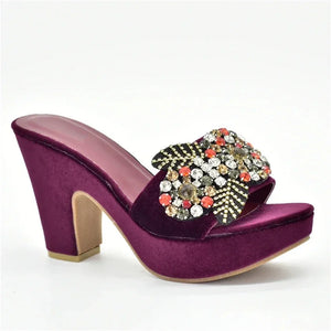African Women Party Pumps Decorated with Rhinestone Shoes for Wedding Women Wedges Shoes for Women Platform Heels Nigerian Pumps