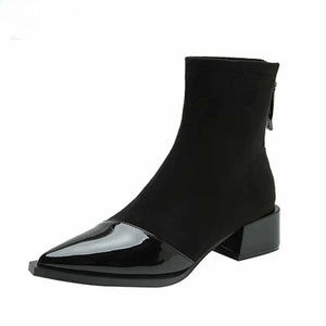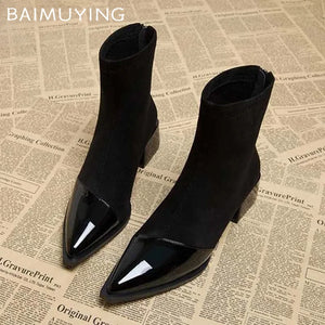 Ankle Boots Women Chunky Mid Heels Suede Shoes Woman Pointed Toe 2024 Trend Winter New Goth Walking Snow Chelsea Botas De Mujer