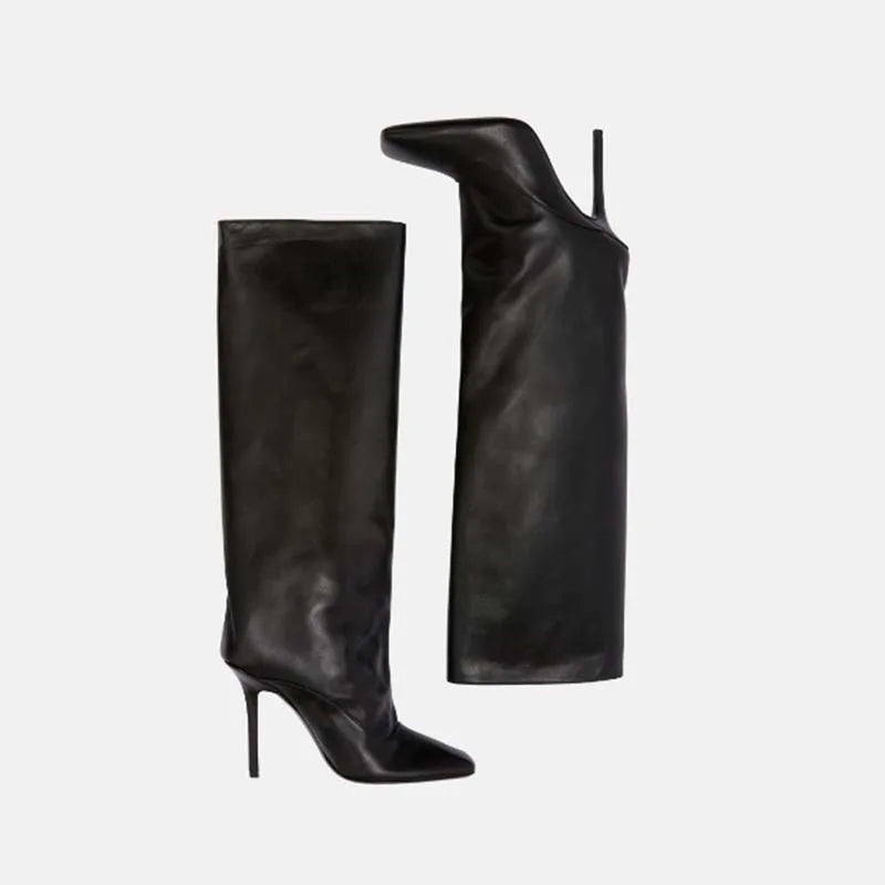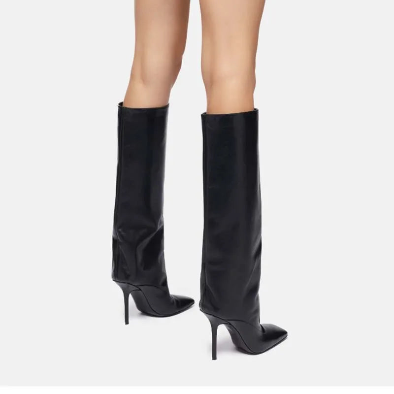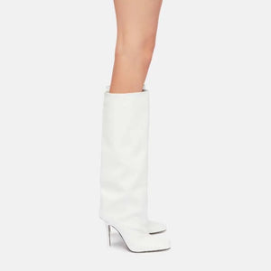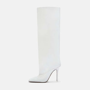 Arden Furtado Autumn 2024 White Square toe Super high heel stiletto heel black Knee high boots Large size wide calf boots 44 45