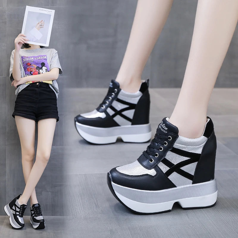 Autumn Women High Platform Shoes Height Increasing Casual Shoes 12 CM Thick Sole Trainers Breathable Shoes Women Sneakers