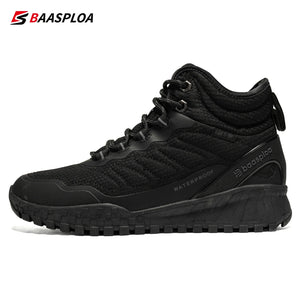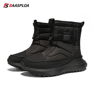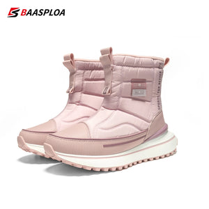 Baasploa Women Snow Boots Leather Waterproof Ankle Boots for Women Plush Warm Casual Shoes Comfort Walking Non-Slip Lace-Up