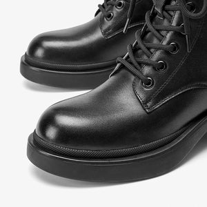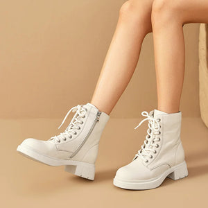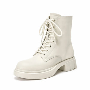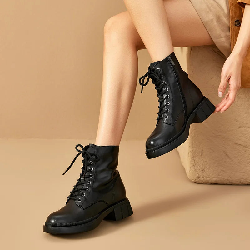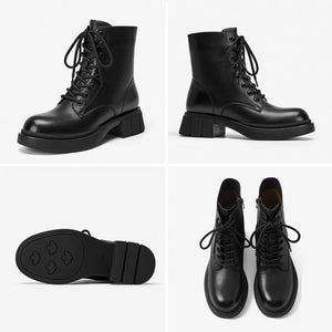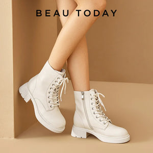 BeauToday Ankle Boots Women Platform Leather Round Toe Side Zipper Lace-Up Ladies Non-slip Thoes Handmade 04492