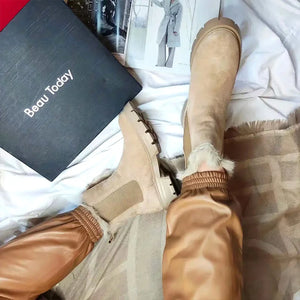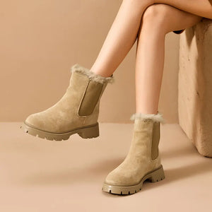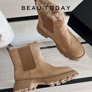 BeauToday Chelsea Boots Women Suede Leather Snow Boots Warm Fur Round Toe Ladies Platform Shoes Handmade 08206