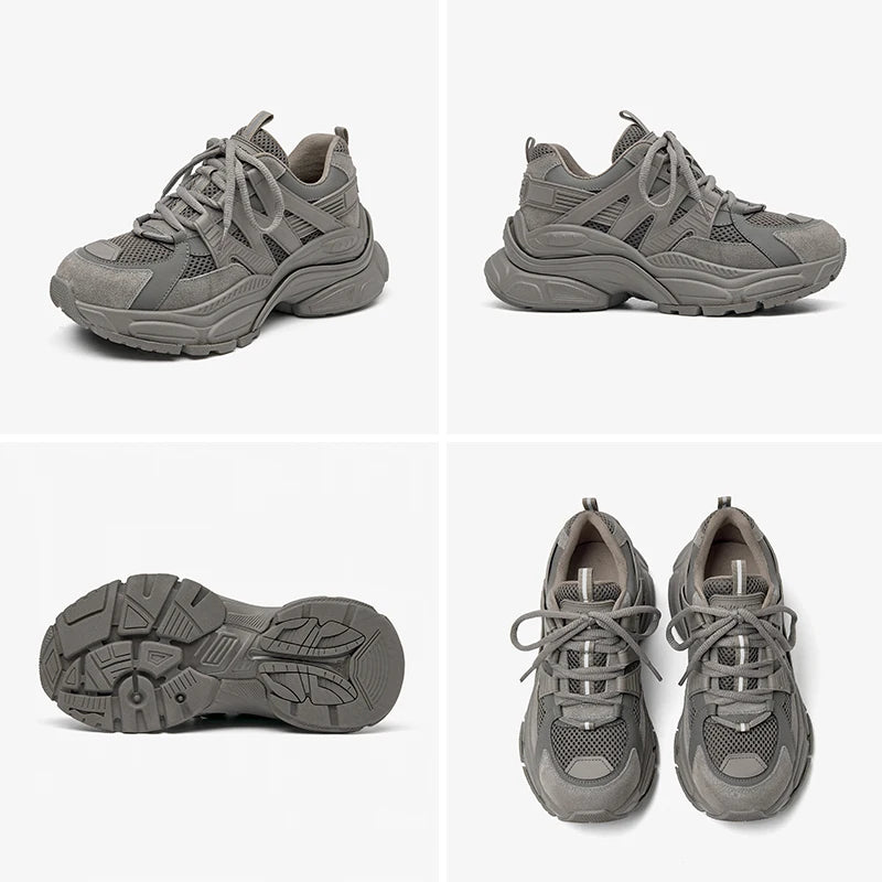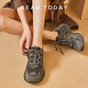 BeauToday Platform Sneakers Women Mesh Solid Color Breathable Trainers Lace-up Round Toe Thick Sole Ladies Shoes Handmade 29462