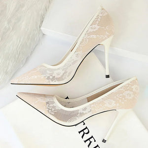BIGTREE Shoes Mesh Hollow Lace Woman Pumps 2025 Spring Women Heels Sexy Party Shoes Thin Stiletto Heels Women Shoes 6 Colour