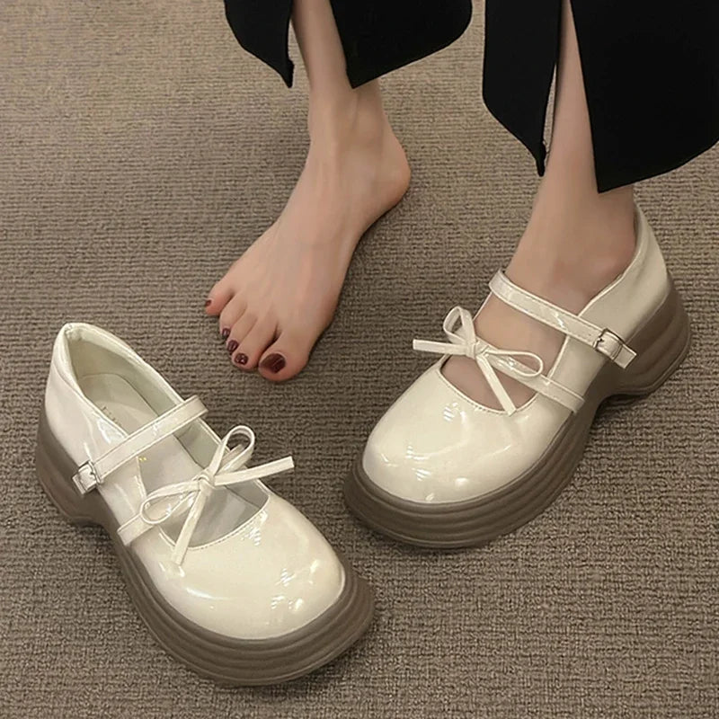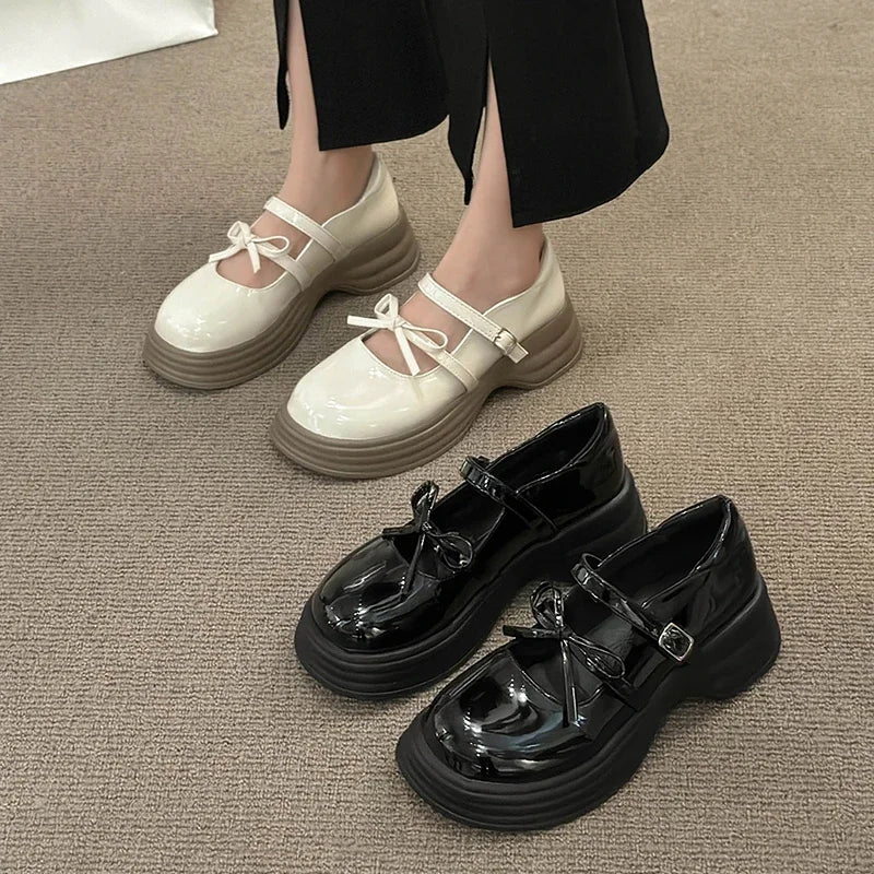 Black Chunky Platform Mary Jane Shoes for Women 2025 Spring Patent Leather Pumps Woman Thick Bottom Bowknot Lolita Shoes Ladies
