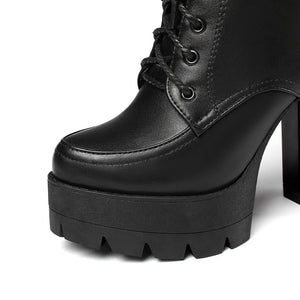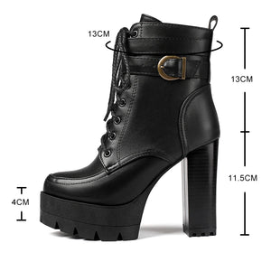 Black Platform Combat Ankle Boots For Women Round Toe Buckle Strap Woman Lace Up Shoes Winter Biker Boot Motorcycle Bottes 41 42
