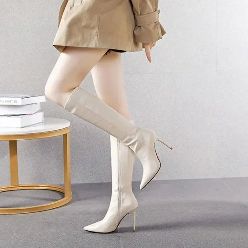 Black Women's Boots Long Pointed Toe Very High Heel Shoes for Woman Footwear Winter Knee Shaft Boot Trend 2024 Demi-season Hot