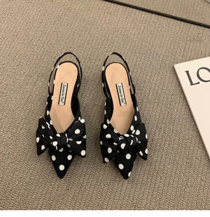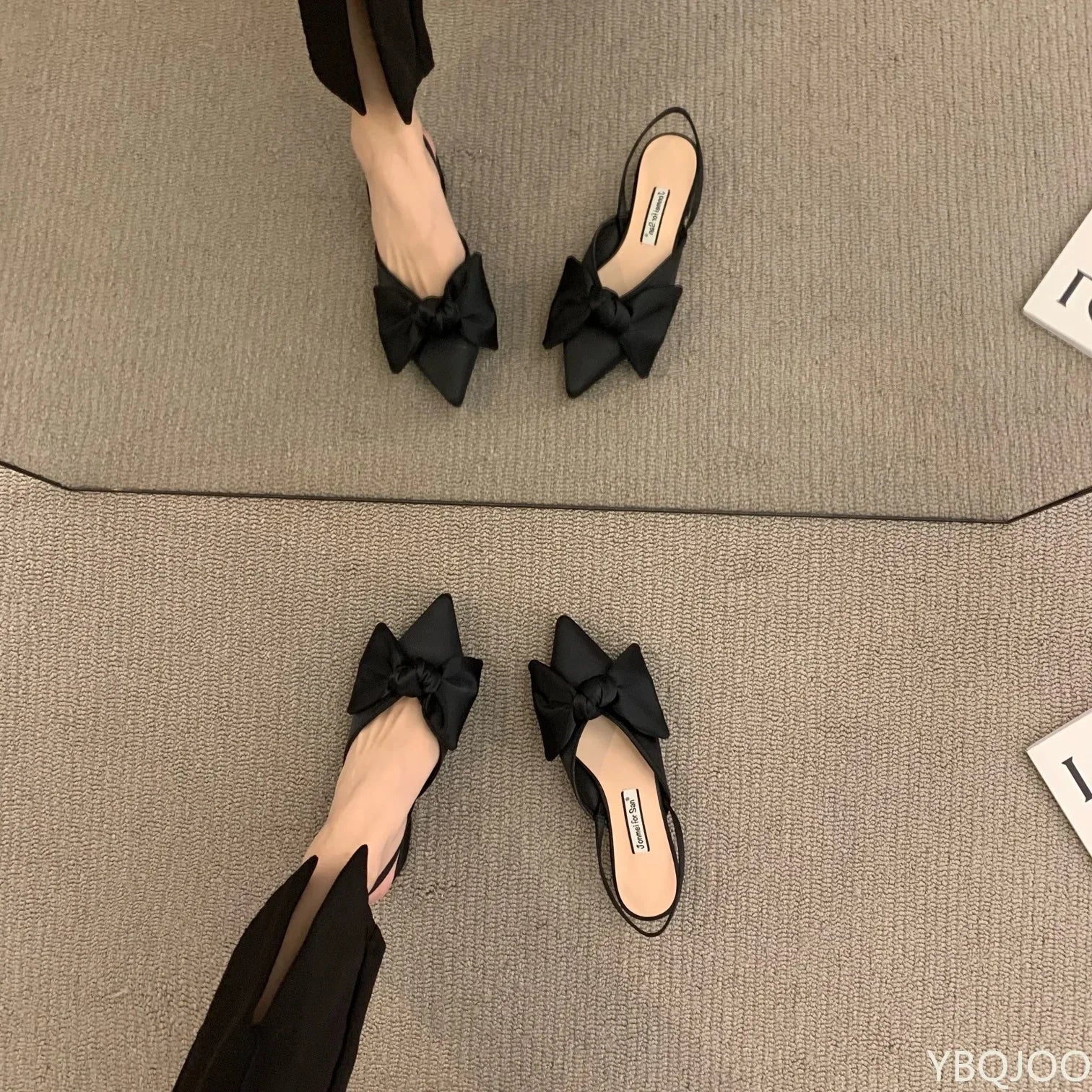 Bow Sandals Women 2022 Summer Pointed Low Heel Sandals Women Fashion Baotou Thin Strap Sandals High Heels Sandalias De Mujer
