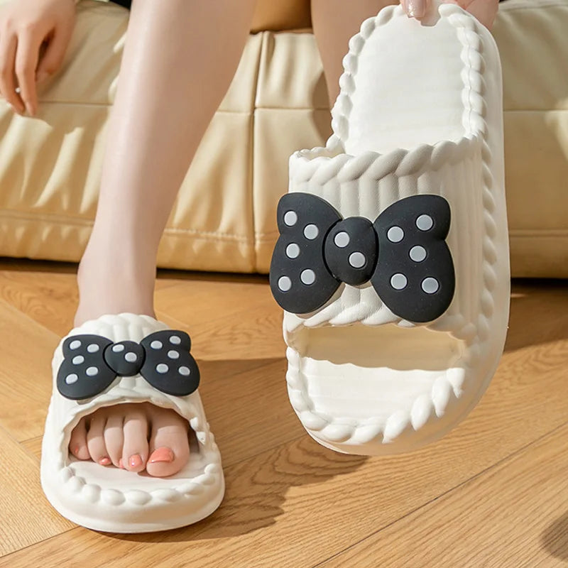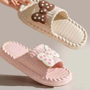 Bow Tie Slippers for Women Sweet Girls Flip Flops Outdoor EVA Non-Slip Beach Slides Comfortable Sandals Summer Fashion Slippers