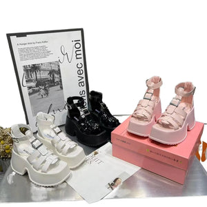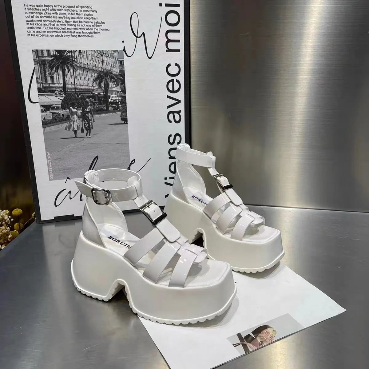 Brand New Design Goth Summer Sandals Women Platform Chunky High Heels Female Shoes Punk Thin Band 2023 Fashion Shoes For Woman