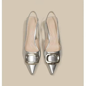 Brand Woman Slingback Shoes Fashion 2024 Spring New Ladies High Heels Elegant Med Heel Pointed Toe Slip on Sandal Mules