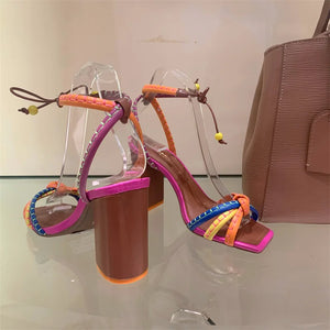 Brazil Fashion Luxury Twist Woven Sandals Color Blocking Designer Brand Women's Shoes Thick with High Heel Sandals Female Casual
