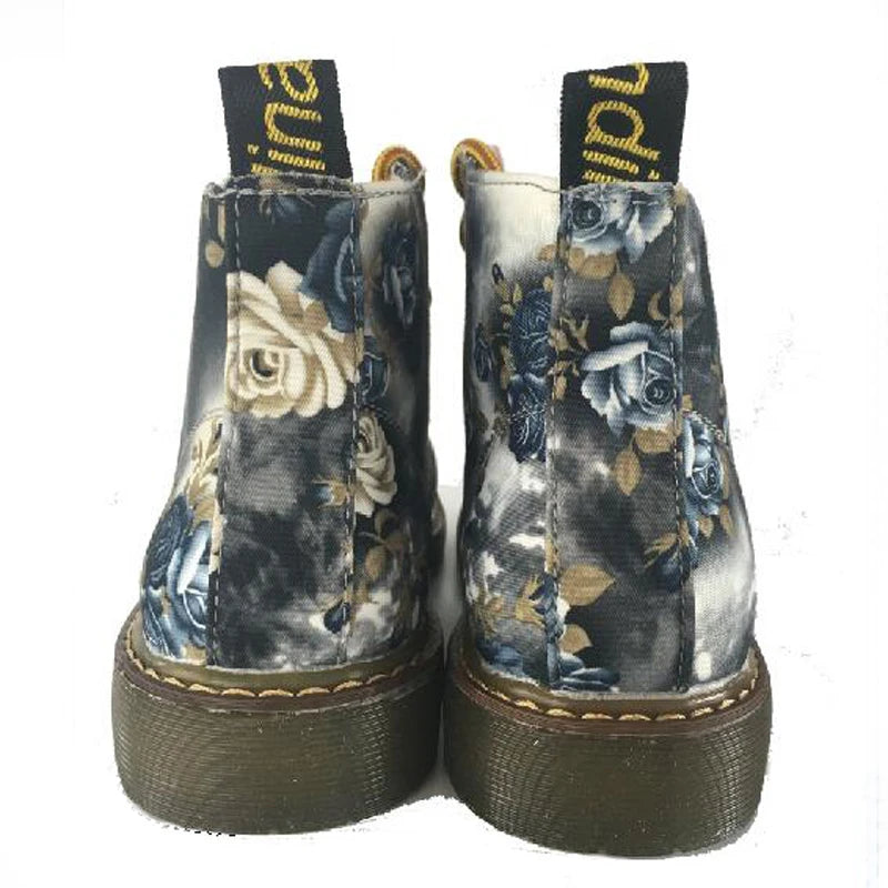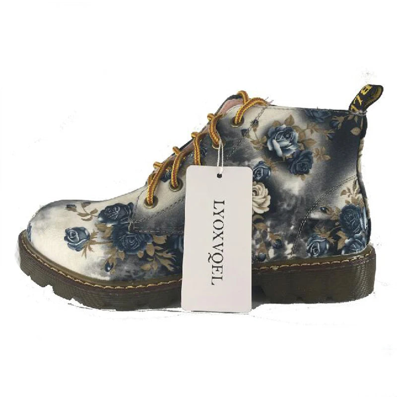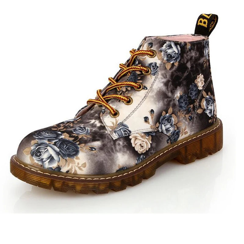 British retro print autumn spring women ankle boots lace up flat boots motorcycle boots size 35-40 M103