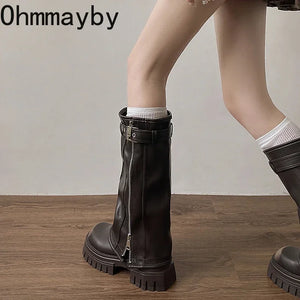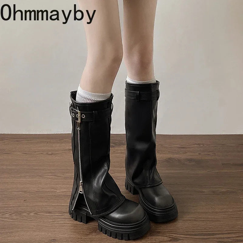 Chunky Knee High Boots Women Fashion Ladies Side Zippers Knight Long Boots 2025 New Autumn Winter Women's Shoes