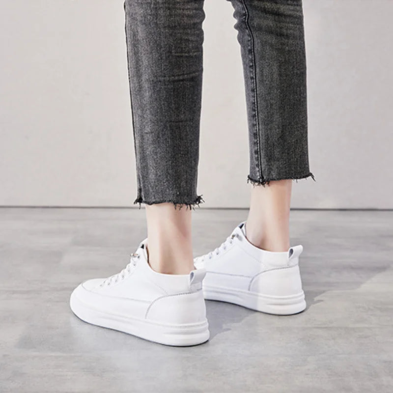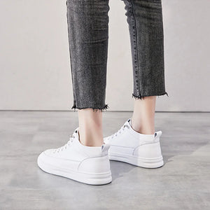 Comemore Spring High Top Spring Vulcanized Flat Shoes Female Fashion Ladies Sports Casual White Genuine Leather Women Sneakers