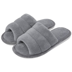 Comwarm Soft Plush Lightweight House Slippers Open Toe Cozy Sandals Indoor Outdoor Flat Non-slip Slippers For Women And Man