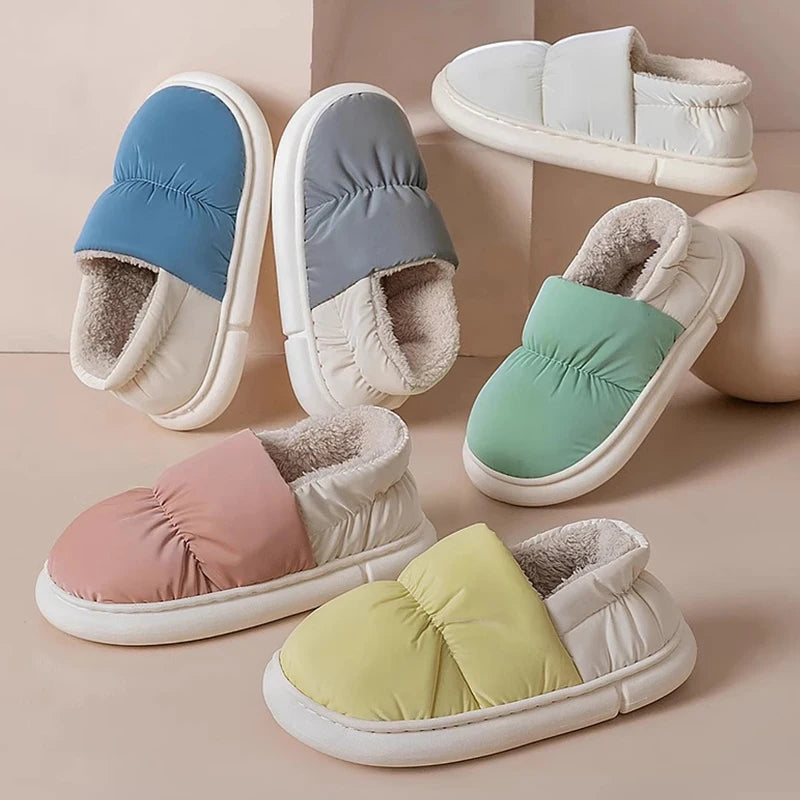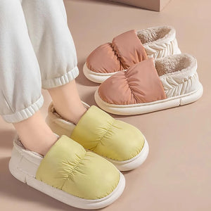 Cotton slippers for women in autumn and winter with added velvet for indoor home insulation and thick soled confinement shoes