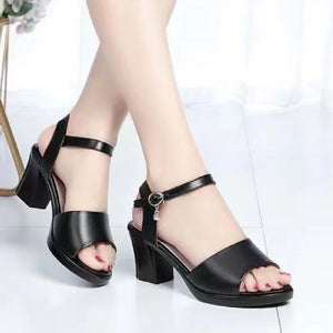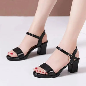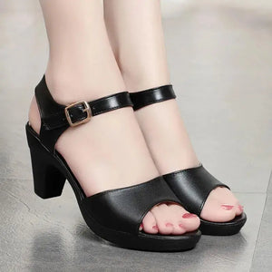 Cresfimix Women Fashion Black Comfort Summer Hollow Open Toe Square Heel Shoes Lady Spring Buckle Strap Open Toe Heels A9511