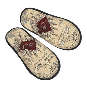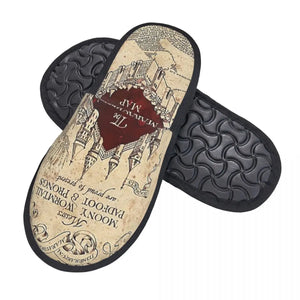 Custom Magic Marauders Map House Slippers Women Comfy Memory Foam Potters Slip On Spa Slipper Shoes