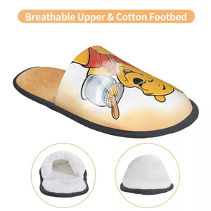 Custom Winnie The Pooh Memory Foam Slippers Women Comfy Warm Cartoon Bear House Slippers