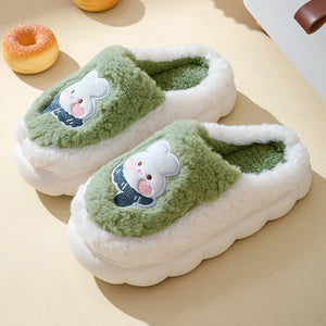 Cute Cartoon Cat Slippers Fluffy Home Thick Platform Slippers Women Men Winter Warm Plush Slides Indoor Lovely Cotton Shoes