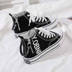Design Sense High Top Canvas Shoes 2023 Autumn New Versatile Board Shoes Simple Side Zipper Women's Shoes Woman Designer Shoes