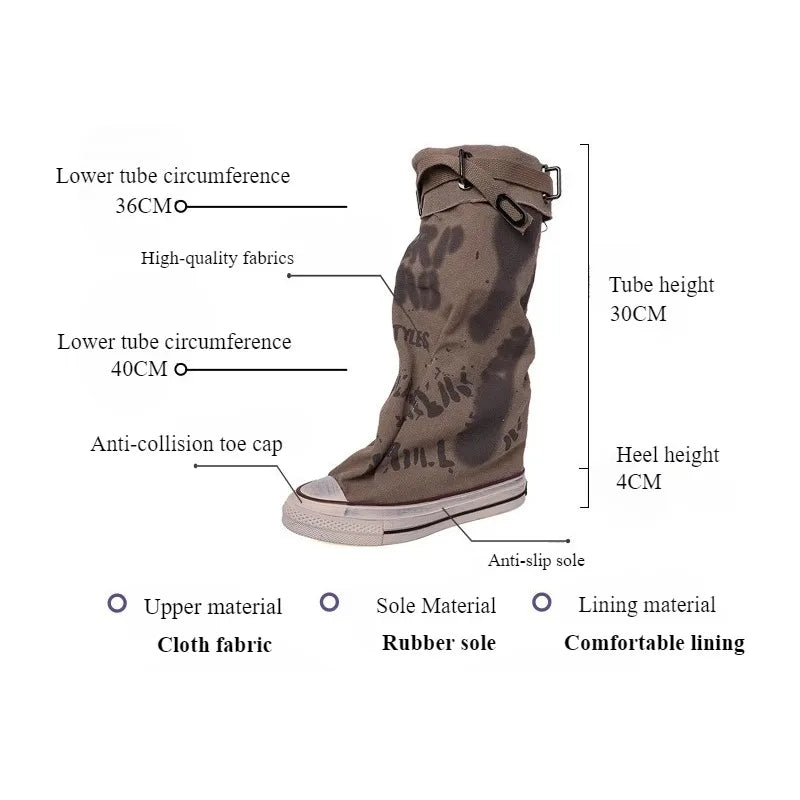 Designer Long Boots Women Cowboy Canvas Shoes Pleats Stacking Boots for Women Autumn and Winter Vintage Graffiti Ladies Boots