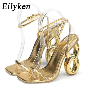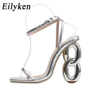 Eilyken Sexy Ankle Buckle Strap Sandals Women Summer Design Fretwork Heels Banquet Fashion Open Toe Club Stripper Ladies Shoes