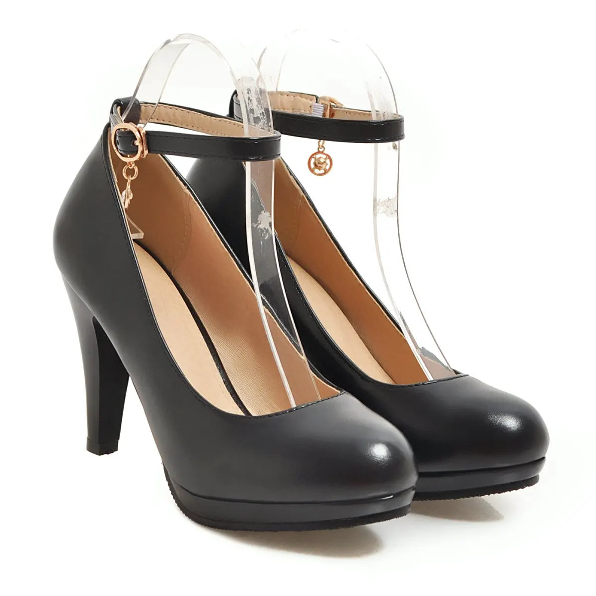 Fashion High Heels Shoes Woman Elegant Ankle Straps Pink White Women's Heeled Pumps Office Wedding Party Shoes Ladies Large Size