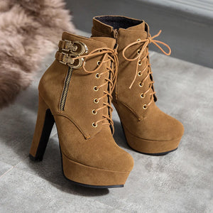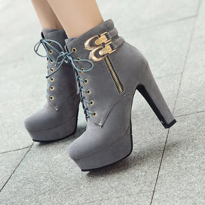 Fashion Women's Ankle Boots High Heeled Platform Short Boot Female Buckle Flock Zipper Gray Ladies Party Shoes Large Size 50