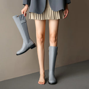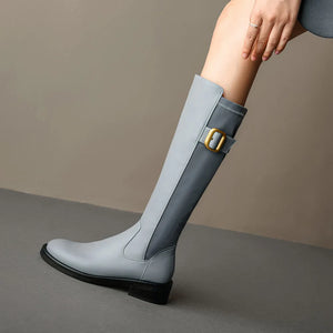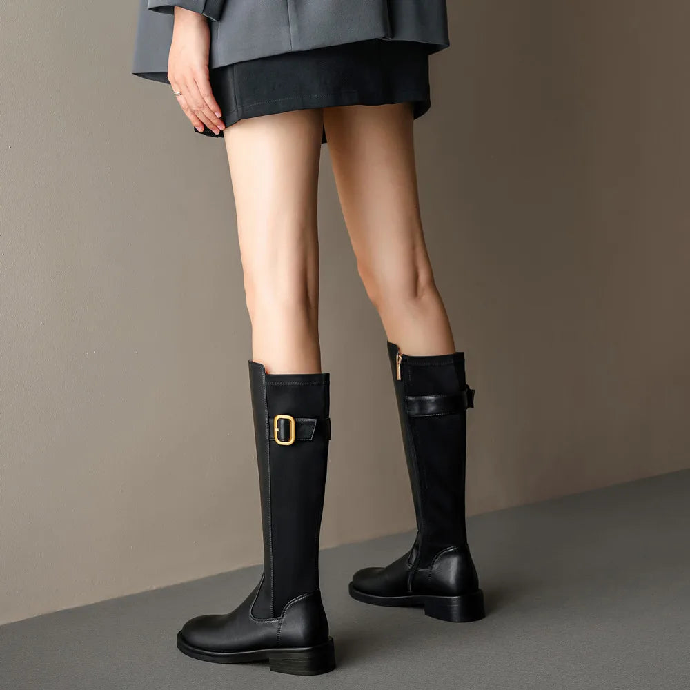 FEDONAS Elegant Women Knee-High Boots Autumn Winter Splicing Genuine Leather Belt Buckle Side Zipper Party Office Shoes Woman