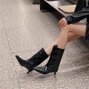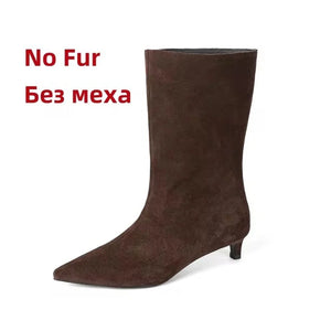 FEDONAS Pointed Toe Stiletto Geuine Leather Boots for Women Mid-calf Tube Shoes Fashion Autumn Winter Knight Boots Party Shoes